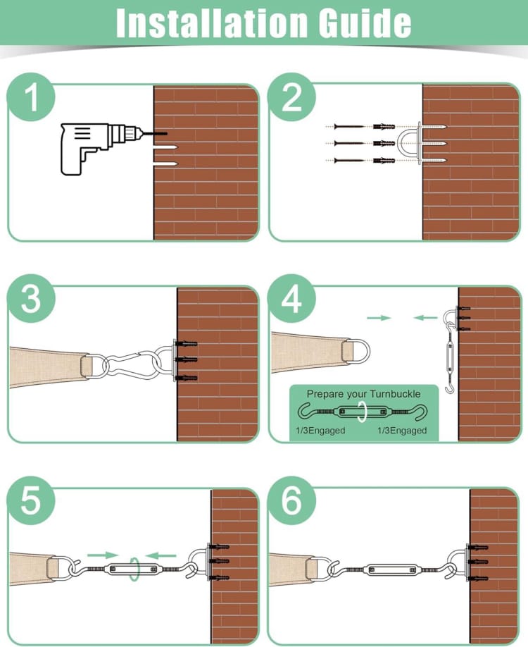 * Easy to Install: This sun sail hardware kit is easy to install