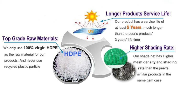 Weight | 65gsm,or Customized(40-100gsm) | Shading Rate | 55- 75% |