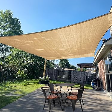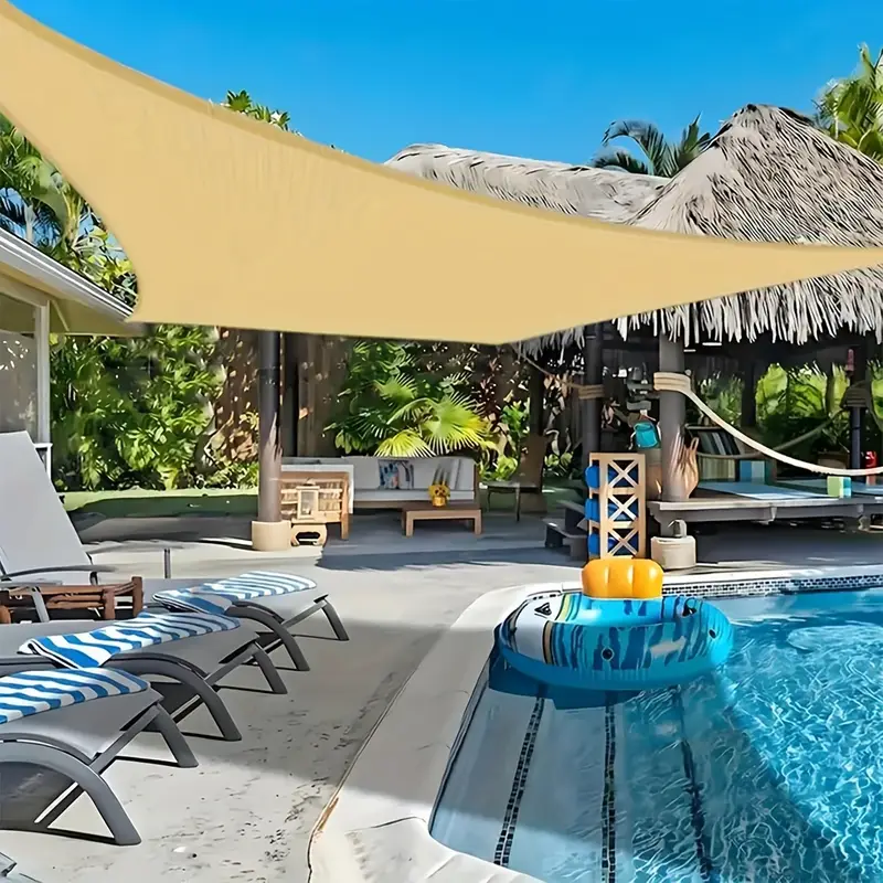 With UV stabilizers and anti-oxidants. Anti-aging,large-area coverage and it has the ability to adjust control environment. Rust proof mounting fixtures-stainless steel D-rings. Ideal for decks,gardens,backyards,entryways,pools and countyards.Lightweight and foldable design making it easy for storage.