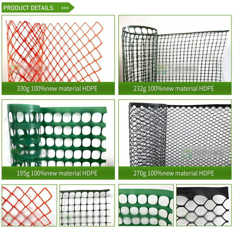 Heavy-duty plastic fences have a variety of mesh shapes, such as diamond-shaped plastic nets, diamond-shaped plastic nets,hexagonal plastic nets, and square plastic nets. And the colors are also very rich, green, dark green, black, white, orange,yellow and so on. Its size can also be customized, from 1 foot to 20 feet high, and the width can be more than 300 feet (limited to the weight of a single roll).