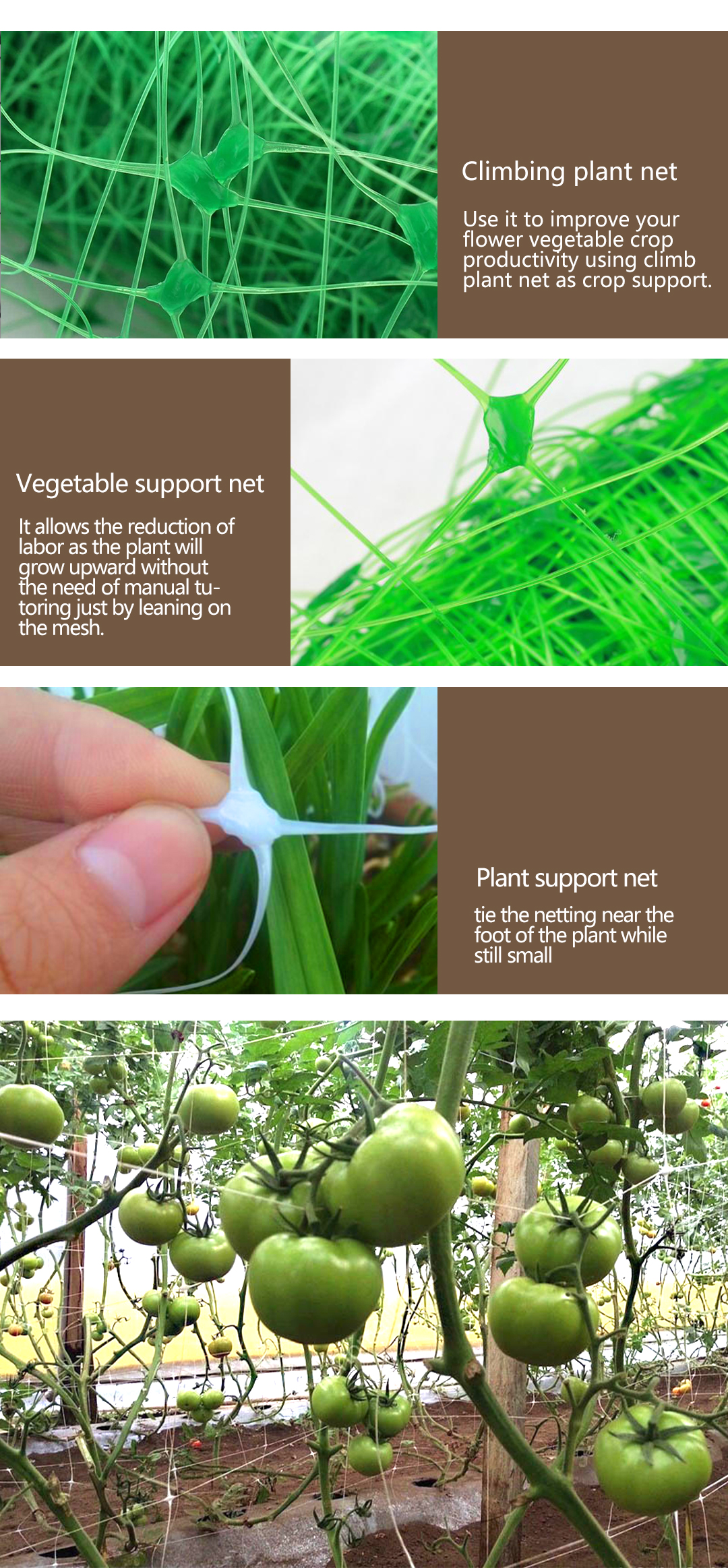 Enhance the productivity of your flower and vegetable crops by using climbing plant nets for crop support.