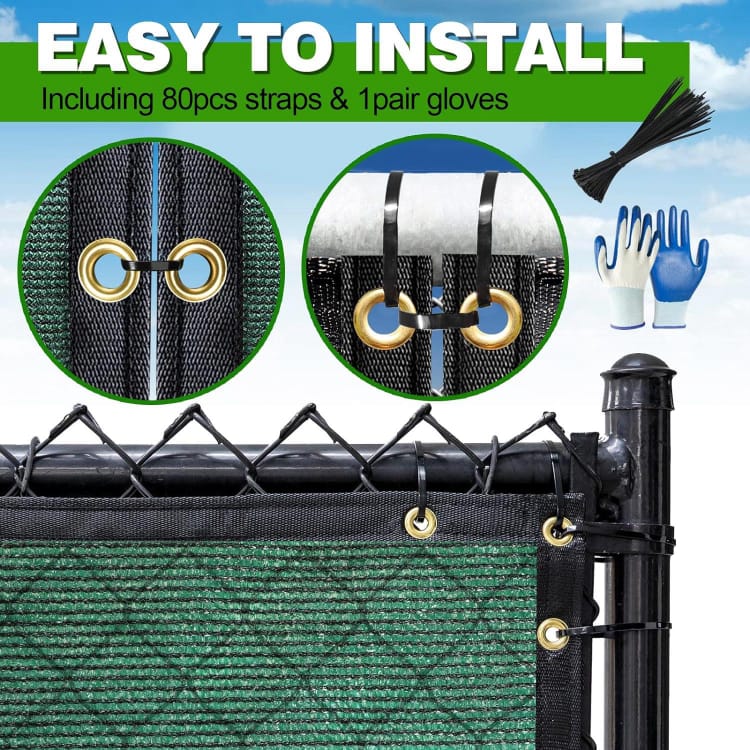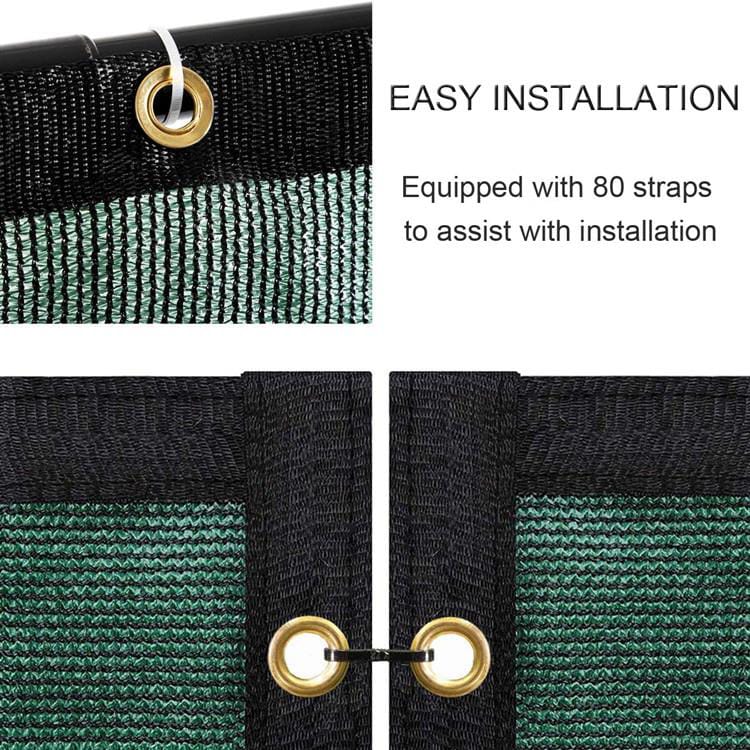 Easy installation fence privacy screen ,Use zip ties to fasten the grommets to the fence in each side.Every 18inch ring with black PE sewing to four sides.