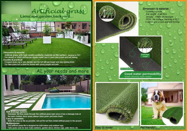 The yarn in our artificial grass turf tile is made of artificial lawn which is safe for child and pets.