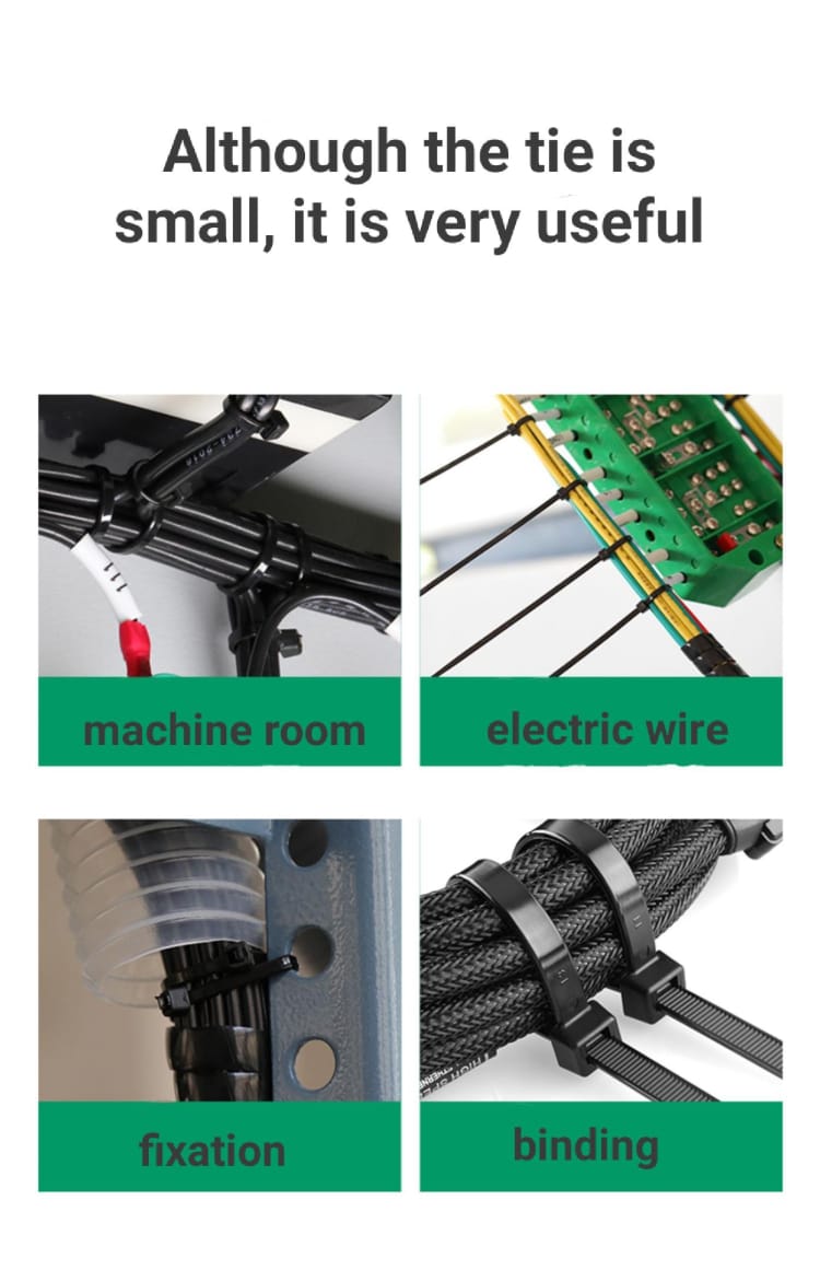 Usage: | First, the cable is bundled in the nylon cable tie, |